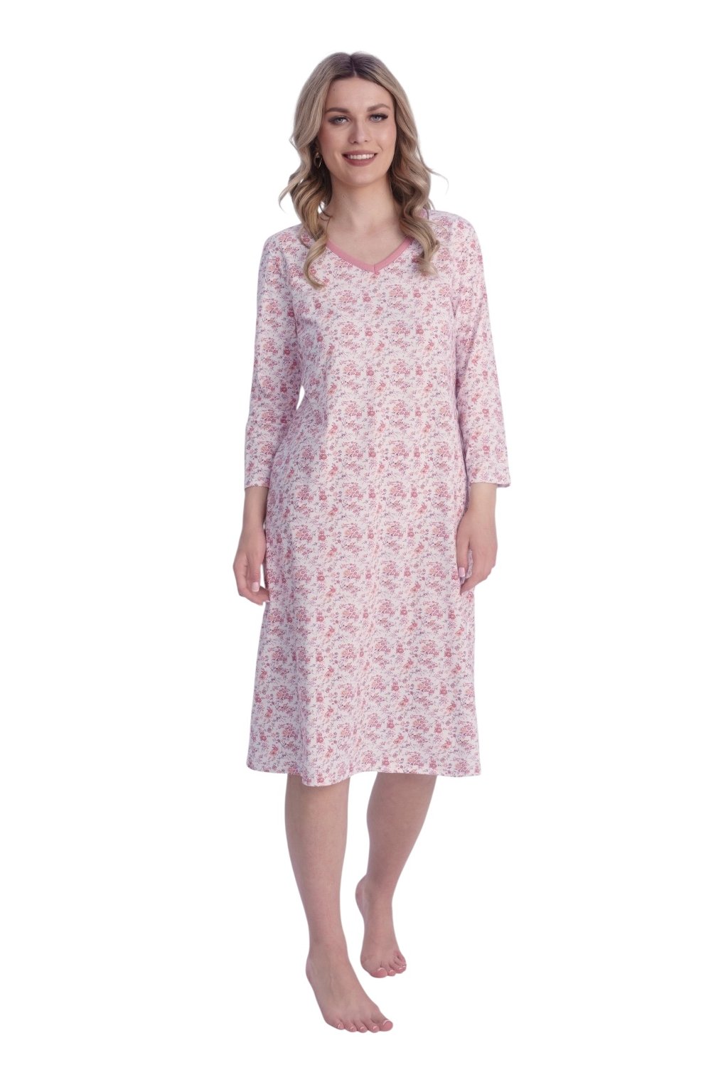 Dámská noční košile s 3/4 rukávem, 104573 122, růžová