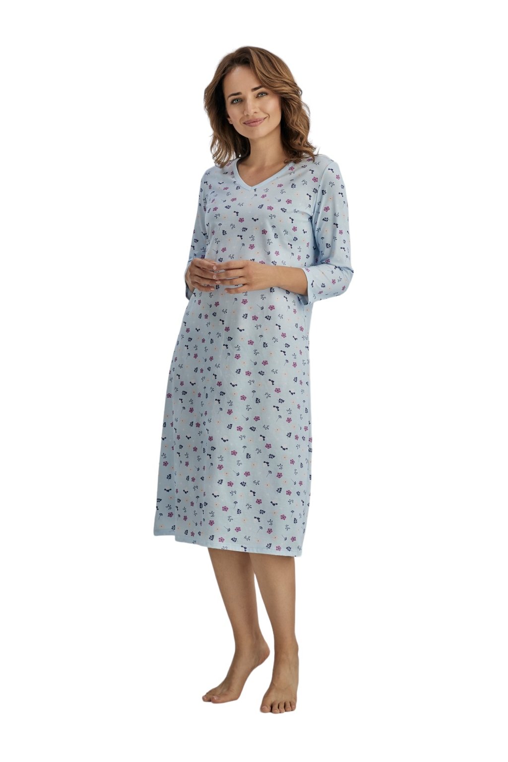 Dámská noční košile s 3/4 rukávem, 104573 393, modrá