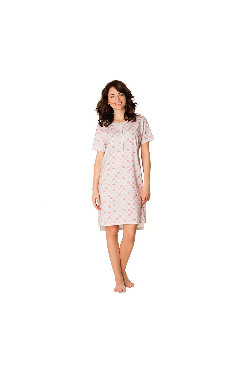 Dámská noční košile s krátkým rukávem, 104444 434, šedý melír