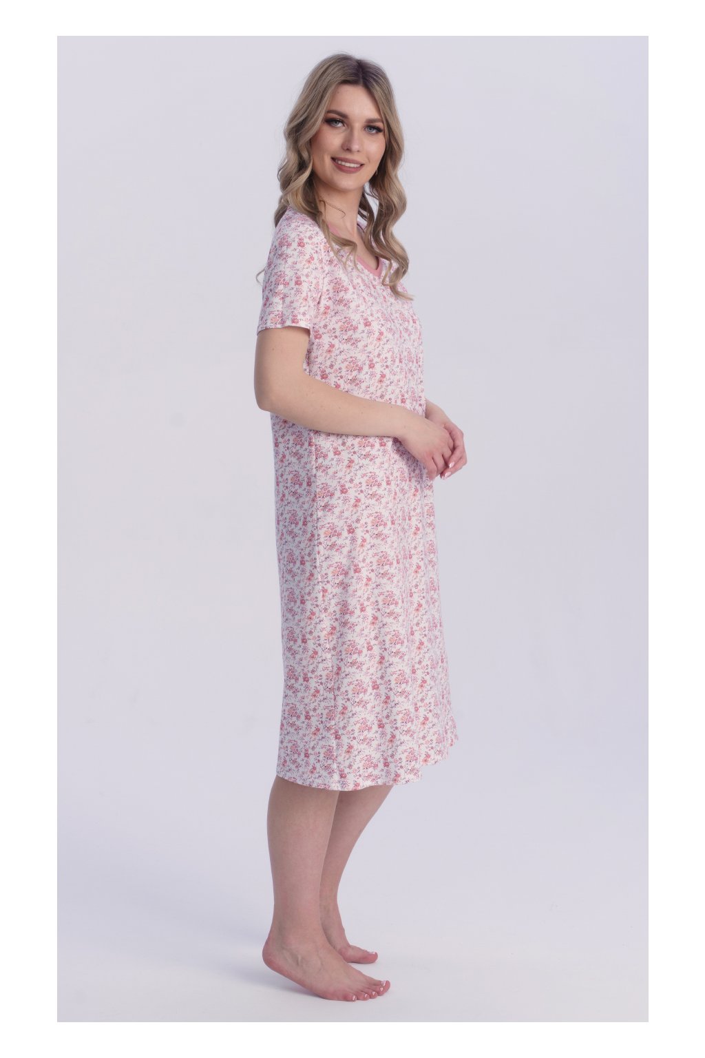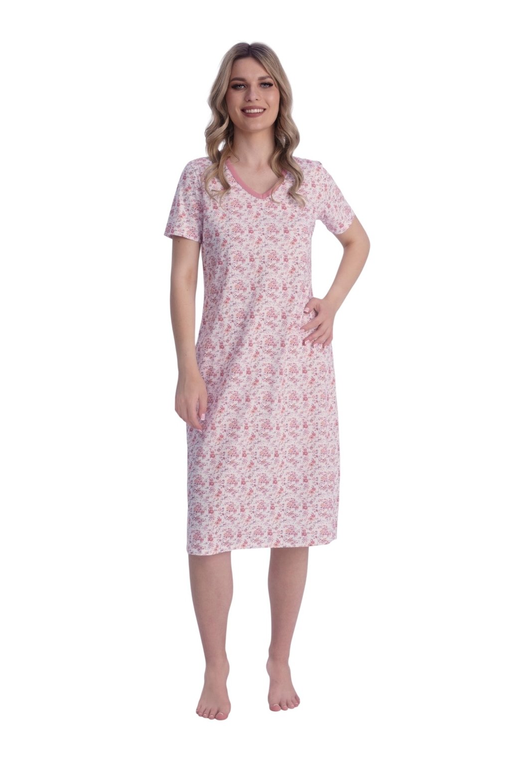 Dámská noční košile s krátkým rukávem, 104572 122, růžová
