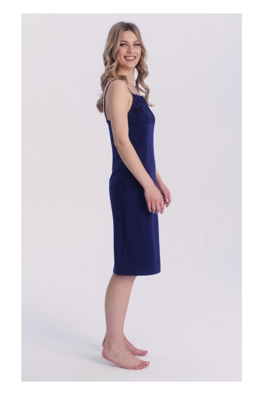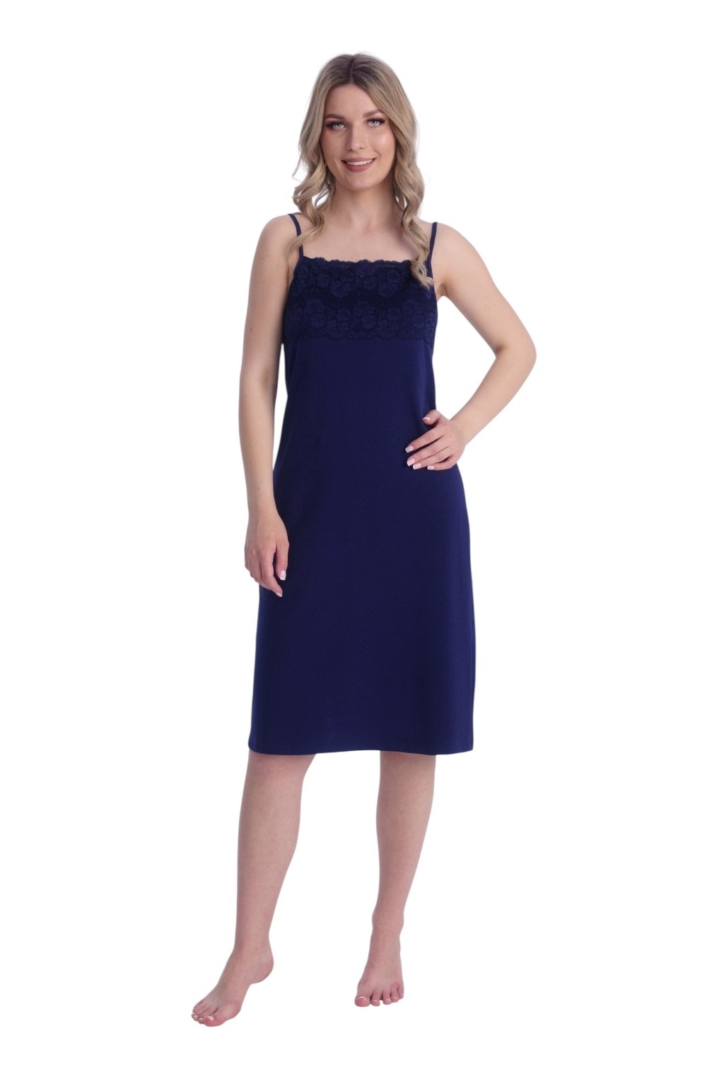 Dámská noční košile s úzkými ramínky, 104799 163, tmavě modrá