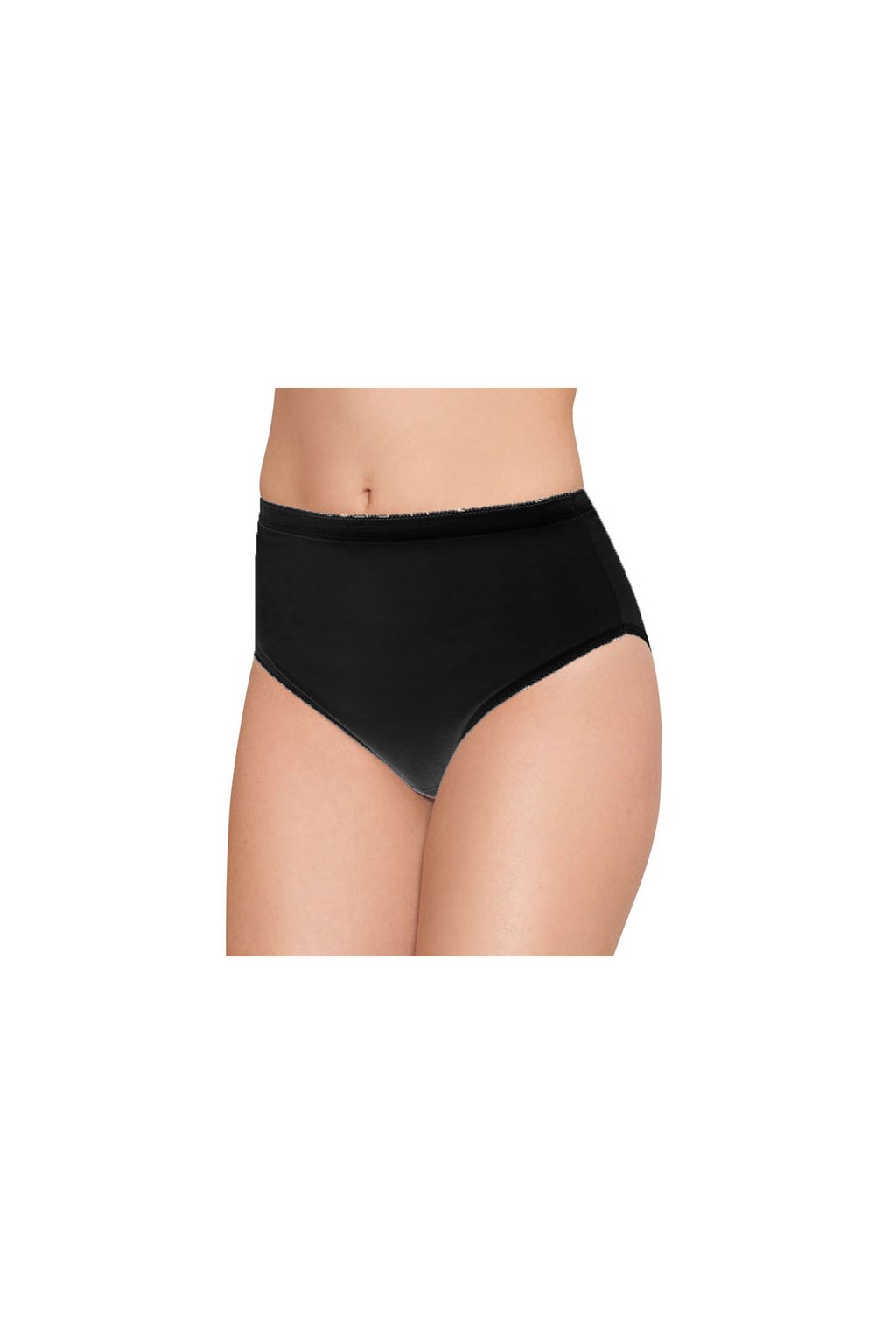 Dámské černé kalhotky Wadima 100NINA vyššího střihu jsou olemovány jemnou gumičkou. Materiál je vyroben z 94% bavlny a 6% elastanu.