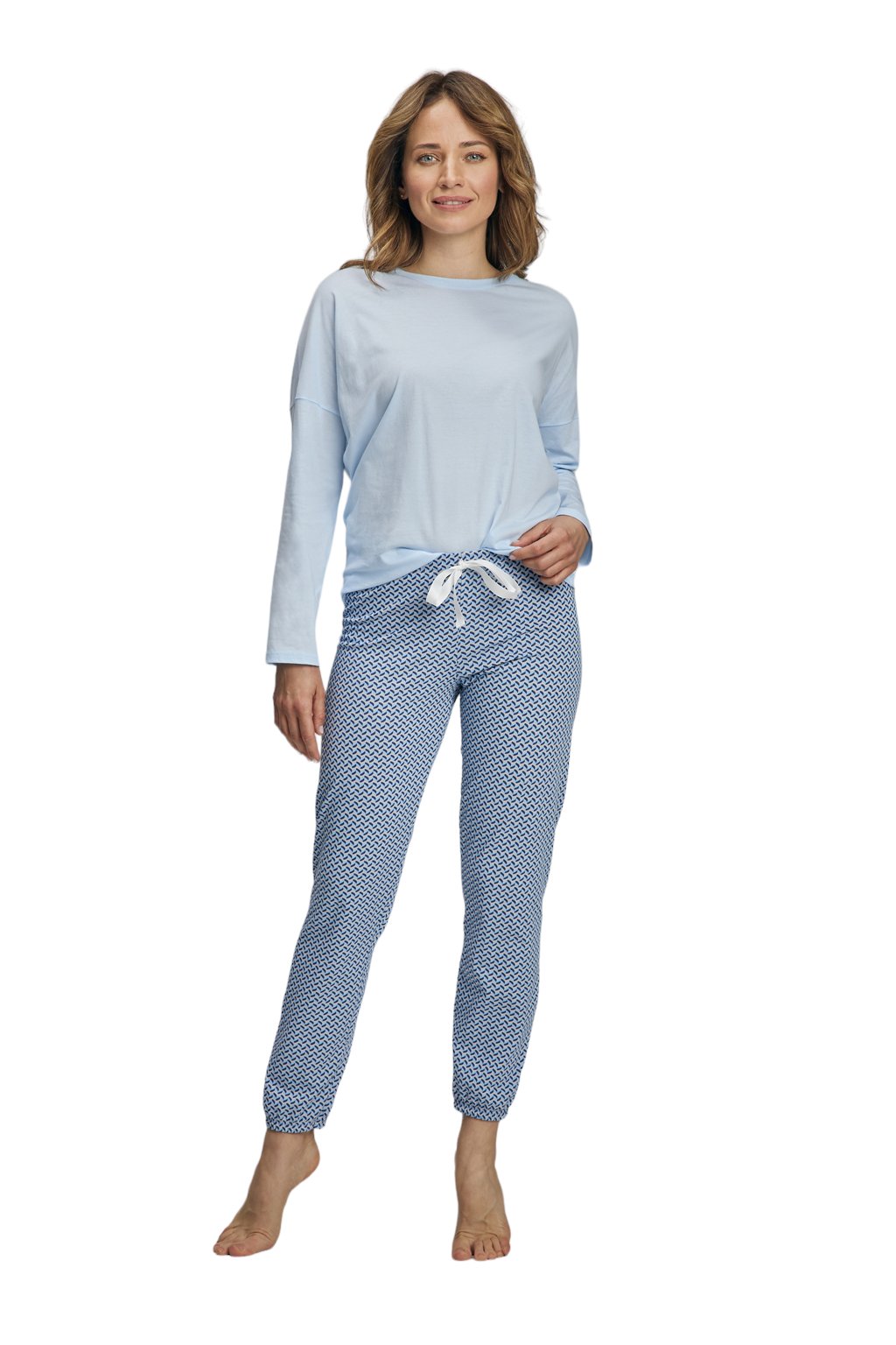 Dámské pyžamo s dlouhým rukávem, 104676 393, modrá