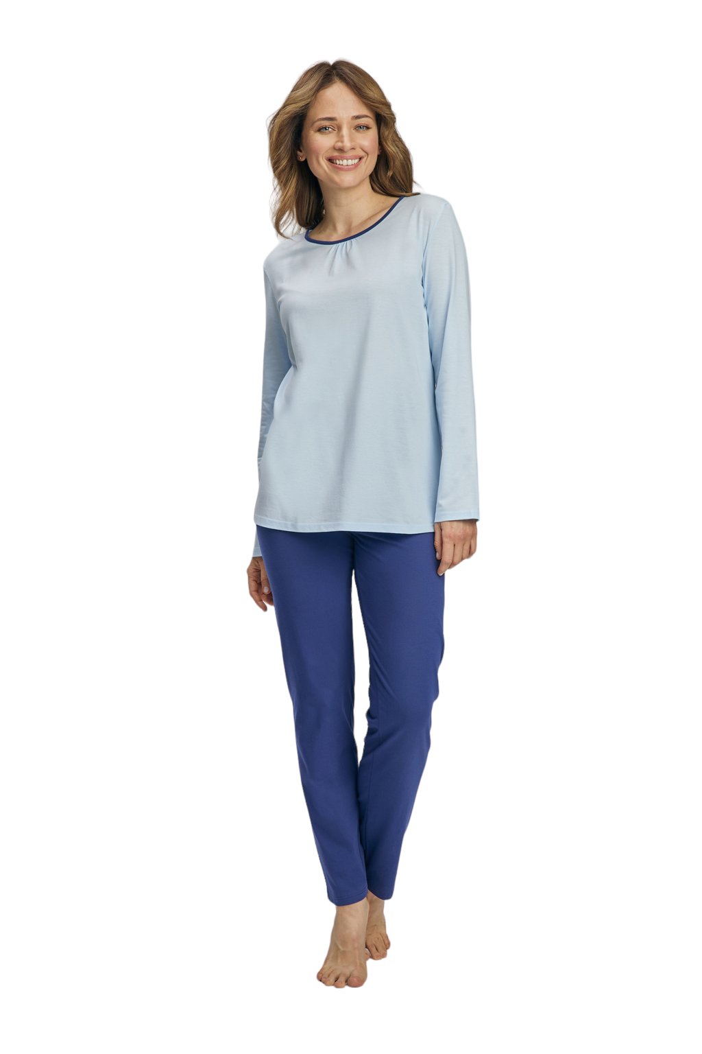 Dámské pyžamo s dlouhým rukávem, 104688 393, modrá