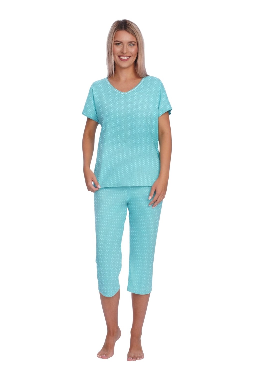 Dámské pyžamo s krátkým rukávem, 104823 948, tyrkysová