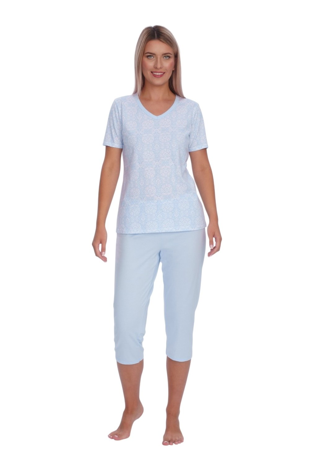 Dámské pyžamo s krátkým rukávem a 3/4 nohavicemi, 104669 40, světle modrá