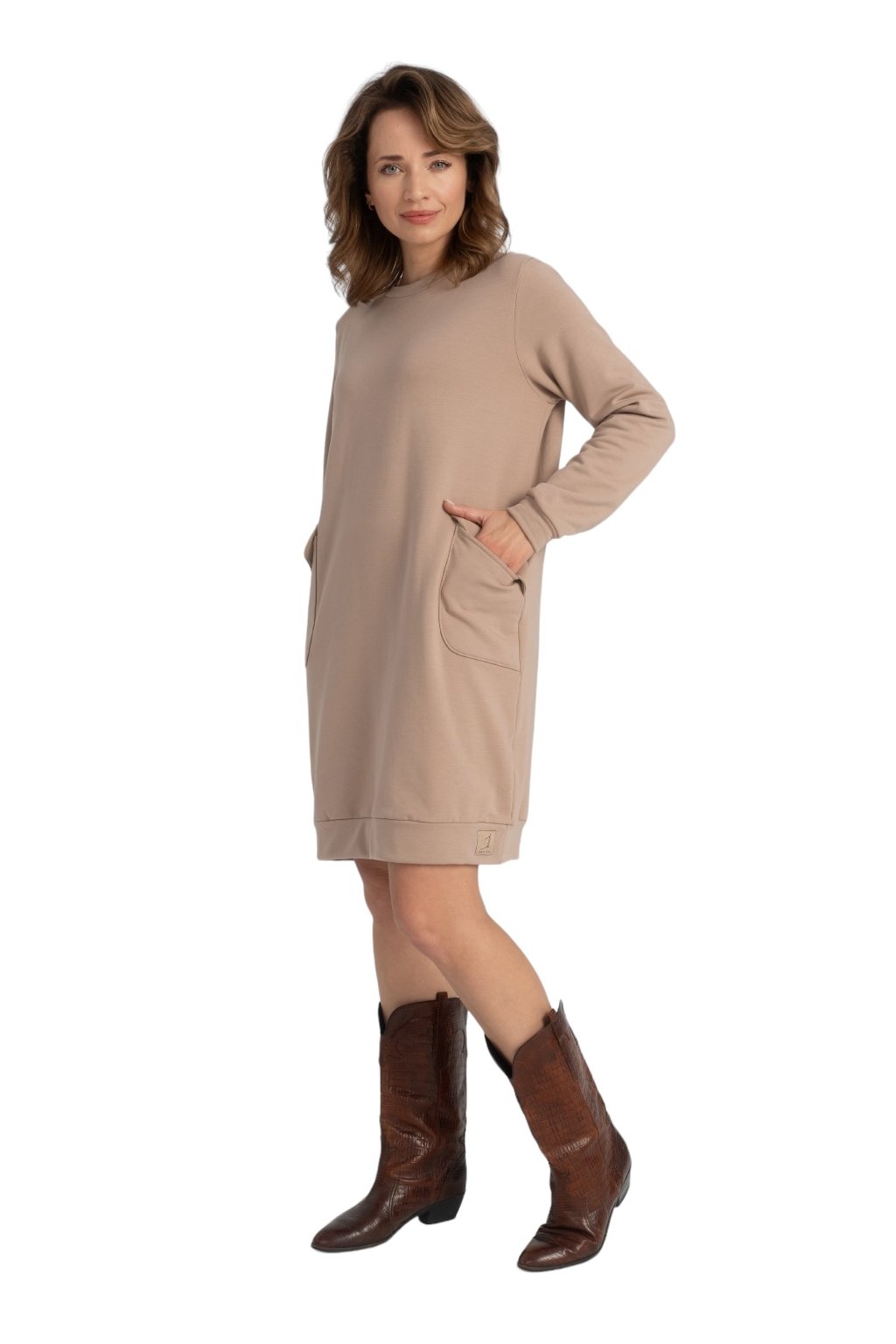 Dámské šaty s dlouhým rukávem, 1N536 331, béžová