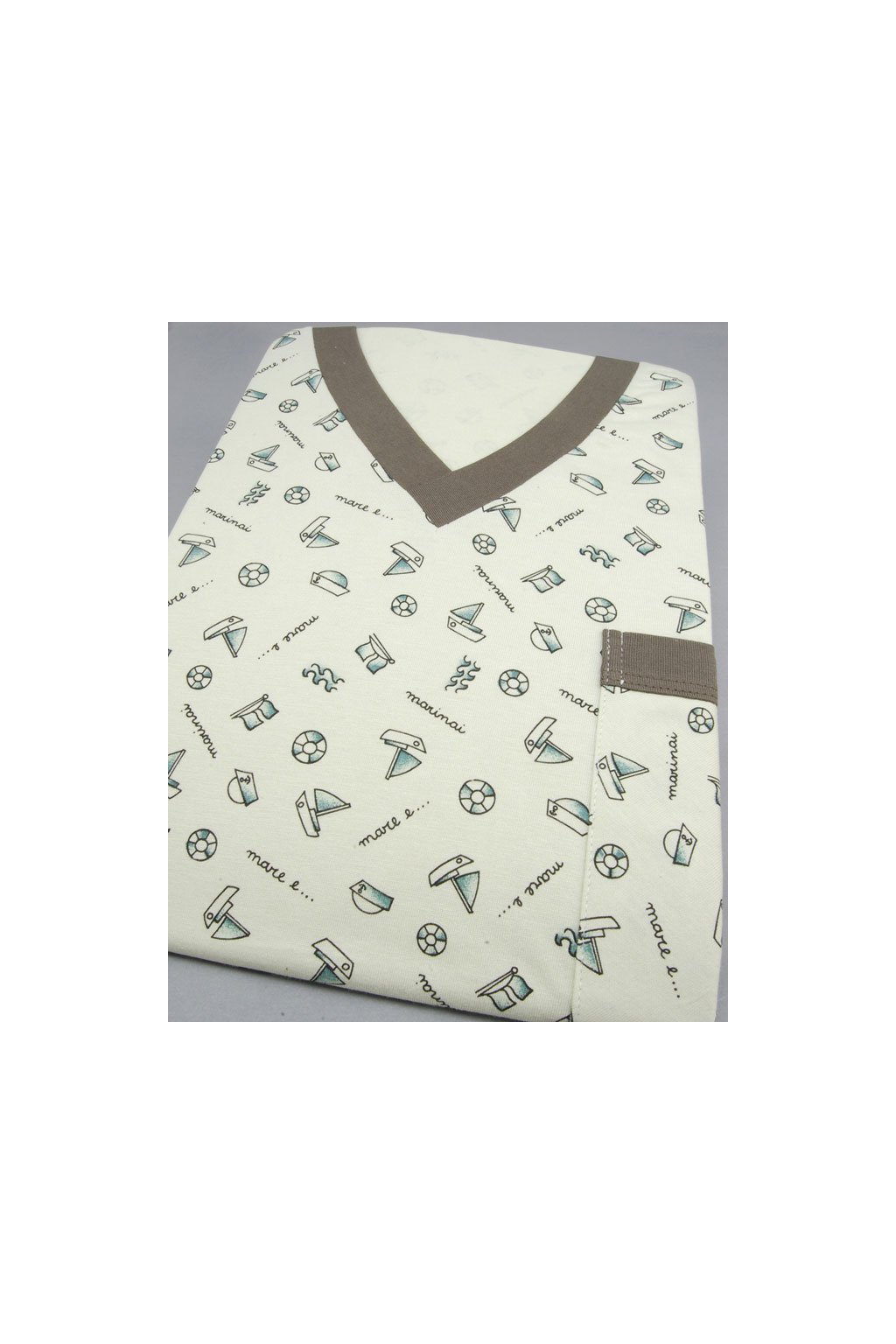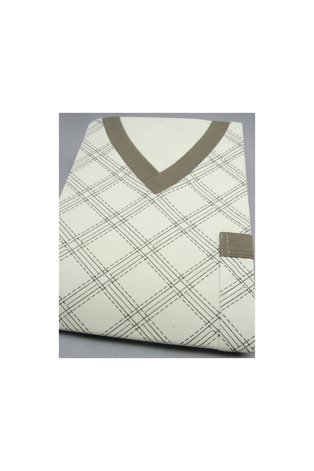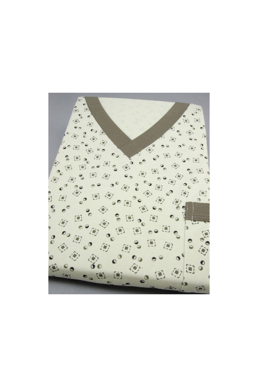 Pánské pyžamo Wadima 204ERNEST s výstřihem do V, s dlouhými rukávy a nohavicemi. V barvě béžové/tmavě zelené. Materiál ze 100% bavlny.