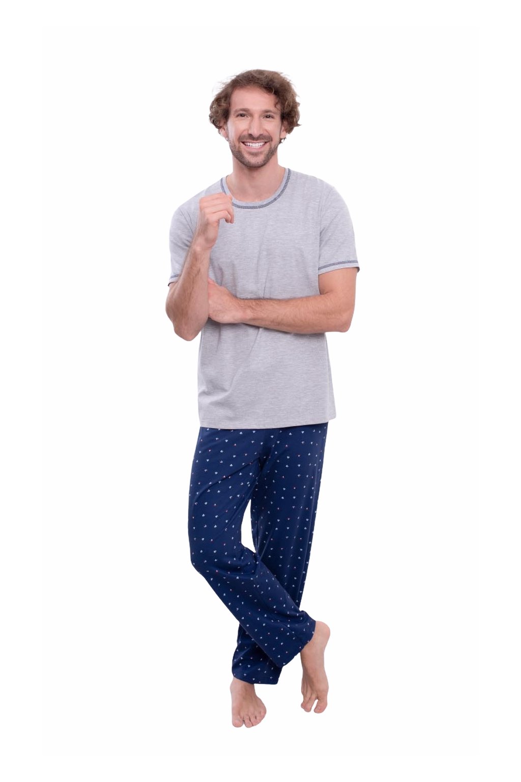 Pánské pyžamo s krátkým rukávem a dlouhými nohavicemi, 204148 30, šedá